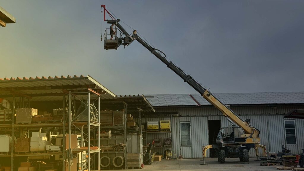 Mit Arbeitskorb oder Seilwinde erreichen wir Dächer, Fassaden und schwer zugängliche Bereiche oder heben Material sicher ins Obergeschoss oder über den Zaun. Unsere drei Teleskoplader mit bis zu 26m Reichweite vermieten wir ausschließlich mit erfahrenem Bedienungspersonal – für kontrolliertes und sicheres Arbeiten.