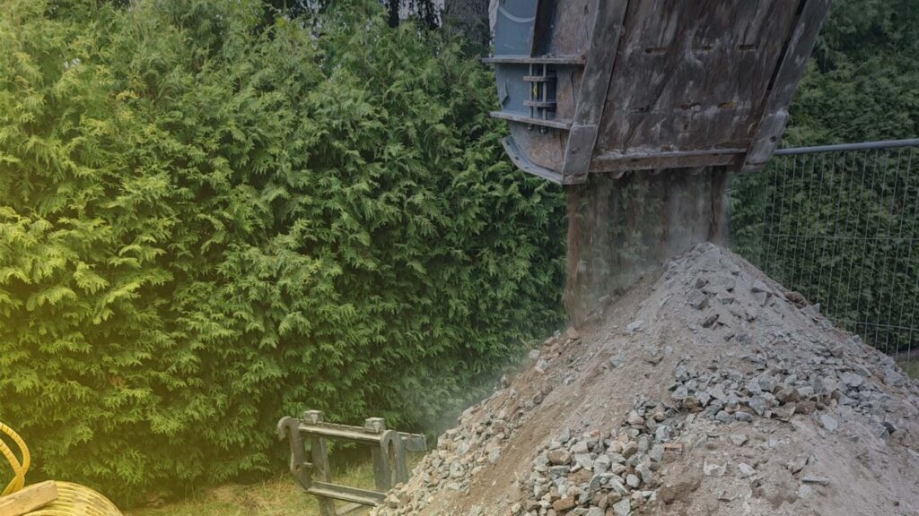 Nach dem Abbruch können wir – je nach Eignung der Bausubstanz – das Material direkt vor Ort brechen, aufbereiten und wieder einbauen. Das spart Entsorgungskosten, reduziert Materialzukäufe und vermeidet unnötige Transporte – etwa bei Unterbau oder Hinterfüllung.