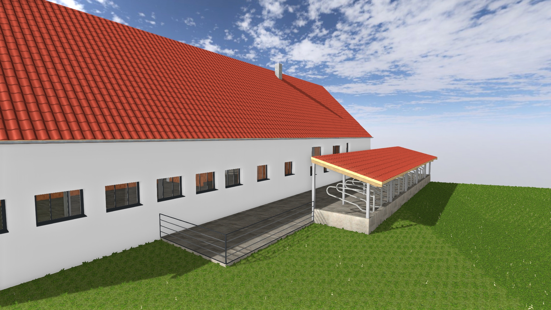 Für die Erweiterung eines bestehenden Kuhstalls mit 14 zusätzlichen Liegeplätzen haben wir die vollständige Genehmigungsplanung erstellt und den Bauantrag ausgearbeitet. Grundlage war ein Aufmaß des Bestands vor Ort, auf dem wir die Entwurfs- und Genehmigungsplanung aufgebaut haben.
